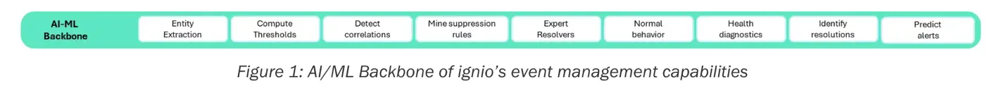 ignio leverages event management by integrating an “AI/ML backbone” with tacit knowledge-based rules, enabling efficient noise reduction, event triage, and resolution.