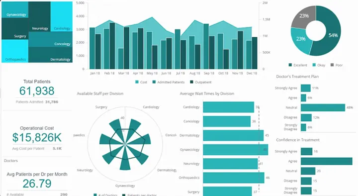 - Hospitals make use of such views to get a clear view of their overall performance and identify the gaps to improve the overall patient experience. Below is an example of one such view.